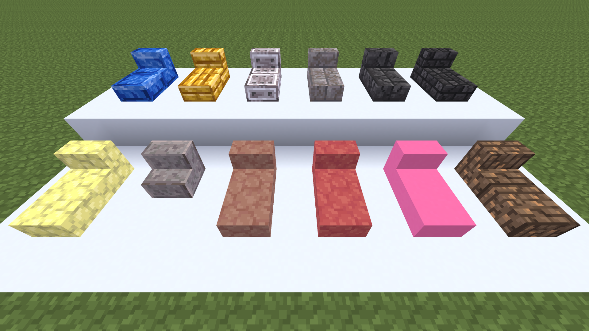 Stairs and slabs unique to Mineclonia, displayed together.